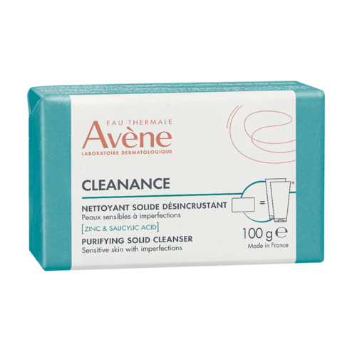 Produsul de curățare solid este special conceput pentru igiena zilnică a tenului gras, predispus la acnee. Datorită formatului său solid, poate fi utilizat de două ori mai des decât un gel de curățare de 200 ml și curăță în profunzime pentru a reduce strălucirea și excesul de sebum, limitând imperfecțiunile. Datorită trio-ului său de ingrediente active purificatoare - acid salicilic, monolaurină și zinc - deblochează porii. Spuma sa cremoasă și delicată, îmbogățită cu apă termală Avène, curăță fără a usca, lăsând pielea cu o senzație plăcută de curățenie.