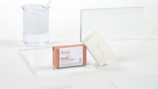 XeraCalm A.D.Batonul de curățare ultra-bogat curăță delicat și protejează pielea foarte uscată, predispusă la eczemă atopică și prurit. Fiind un baton de curățare dermatologic fără săpun, cu pH neutru, are o bază de curățare foarte delicată și oferă pielii bebelușilor, copiilor și adulților o toleranță foarte bună. A fost creat pentru a reduce riscurile de reacții alergice prin formula sa necomedogenică, fără parfum. Formula sa utilizează I-modulia®, primul ingredient activ postbiotic extras din apa termală Avène: reduce senzațiile de prurit, stimulează mecanismele de apărare a pielii și luptă împotriva iritațiilor; faza lipidică include ulei de luminița nopții, care hrănește și restructurează bariera pielii, iar apa termală Avène este în mod natural calmantă, anti-iritantă și emolientă.