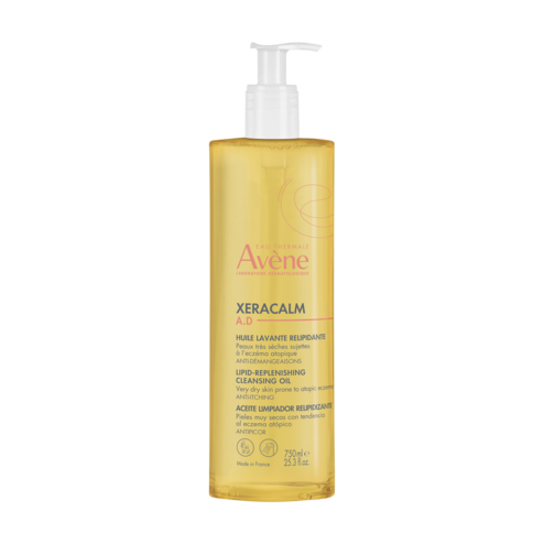 XERACALM A.D Ulei de curățare care reînnoiește lipidele curăță delicat și calmează pielea foarte uscată predispusă la eczeme atopice și mâncărimi. Ca prim pas în rutina anti-mâncărime, lasă pielea moale și confortabilă și respectă microbiomul pielii. Fără săpun și cu un pH fiziologic, poate fi folosit în timpul erupțiilor pe față, corp și scalp. Formula sa combină primul ingredient activ post-biotic derivat din Apa Termală Avène, I-modulia®, care reduce mâncărimea*, stimulează apărarea pielii și luptă împotriva iritației, cu Cer-omega, lipide asemănătoare pielii, cunoscute pentru proprietățile lor de hrănire și reparatoare asupra barierei pielii și Apa Termală Avène, care este în mod natural calmantă, anti-iritantă și catifelantă. Fără parfum și formulat pentru a minimiza riscul de reacții alergice, uleiul de curățare pentru completarea lipidelor XERACALM A.D nu ustură ochii și este ideal pentru pielea nou-născuților, copiilor și adulților.